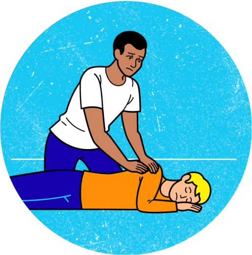If they are unresponsive, first tilt their head and support their neck. Then, gently blow into their mouth. Repeat two rescue breaths for every 30 chest compressions.